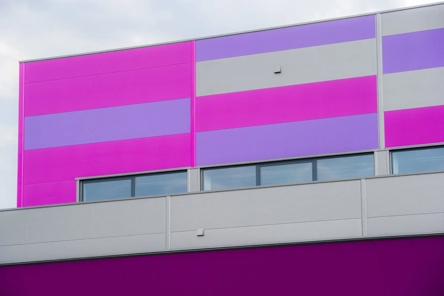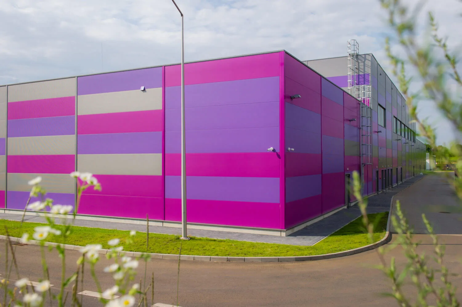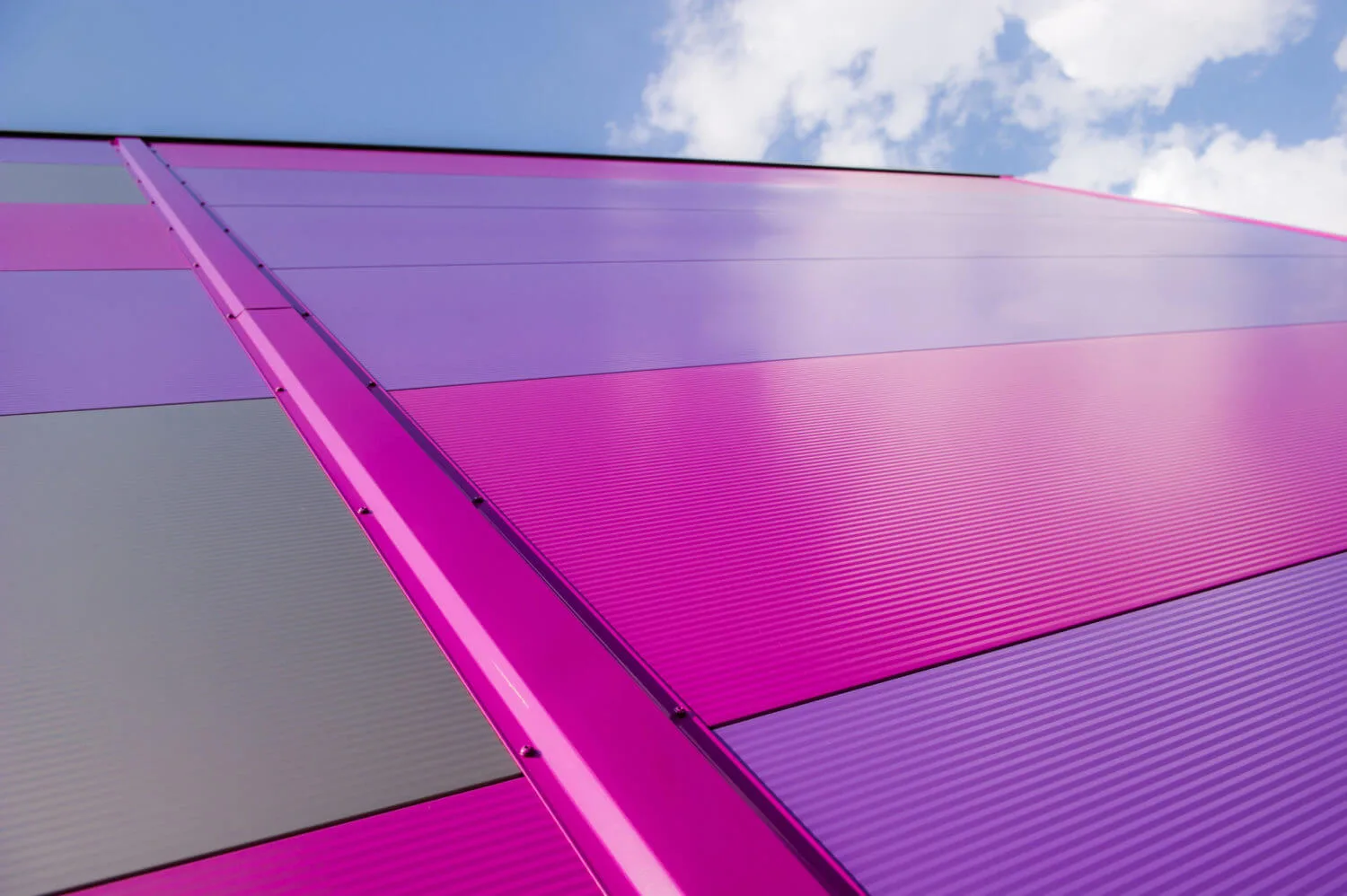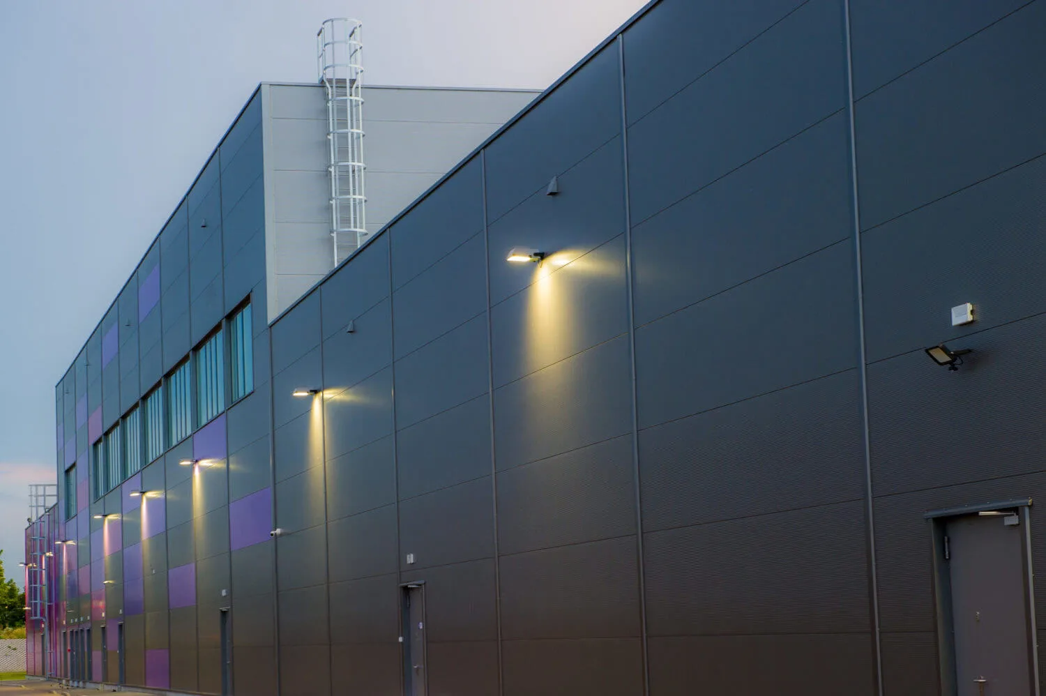 Hoone katmiseks kasutati ARPANEL S PIR ja ARPANEL S MiWo sandwich-seinapaneele RAL 4005, 4008, 9007 ja 7016 värvitoonides, mille kombinatsioon annab fassaadile ainulaadse ilme.