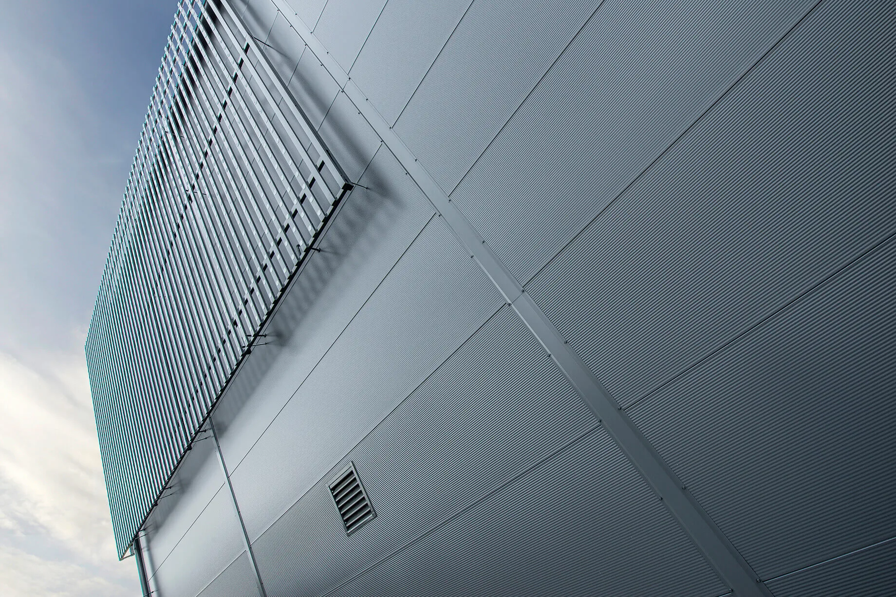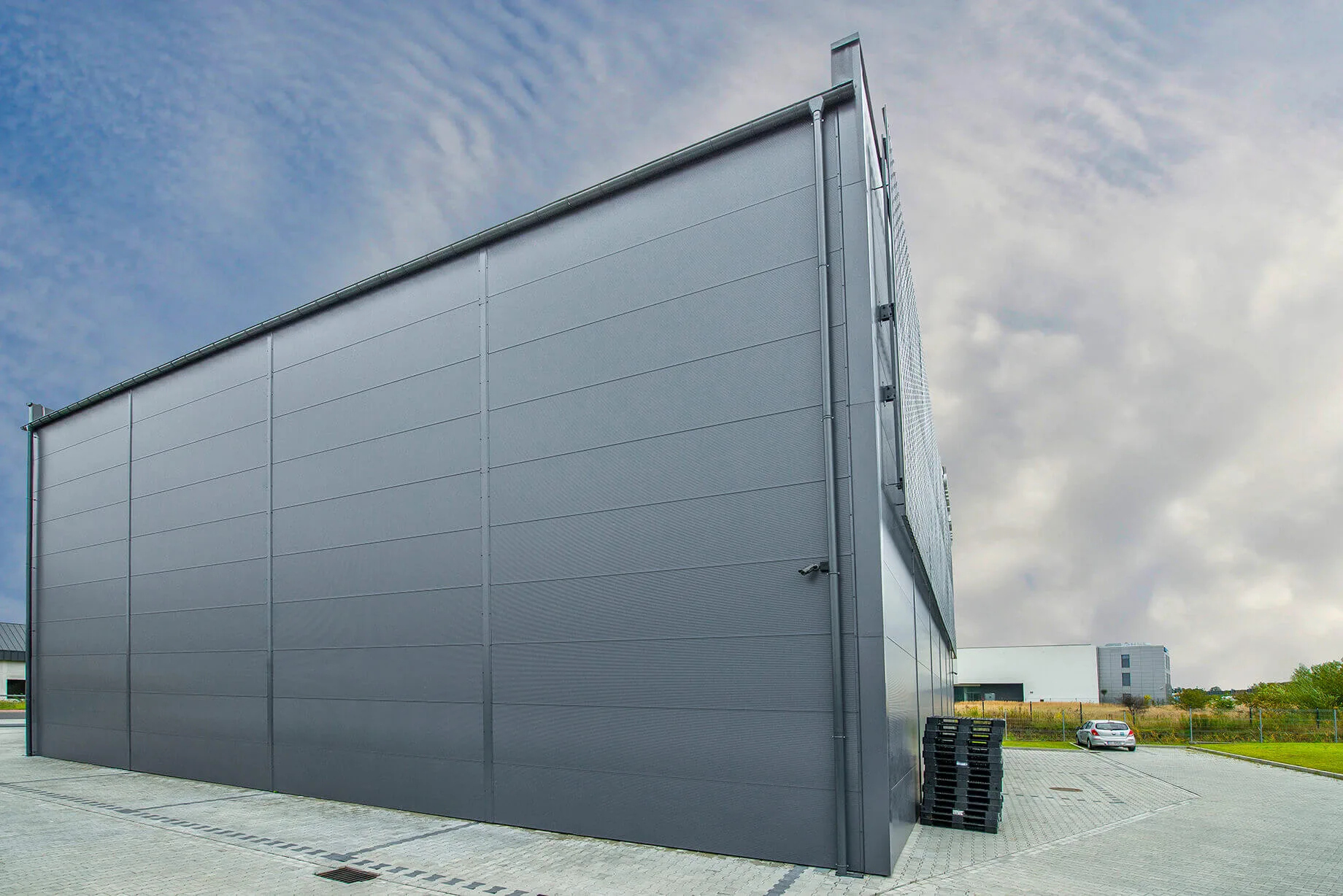 ARPANELi S MiWo sandwich-seinapaneelid valgusreklaami materjalide ja tehnoloogiate ettevõtte lao fassaadil.