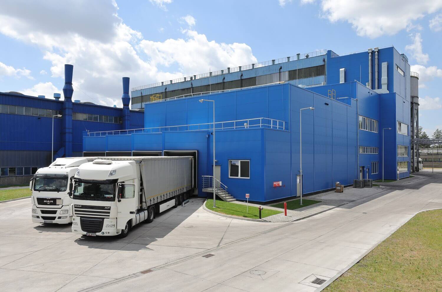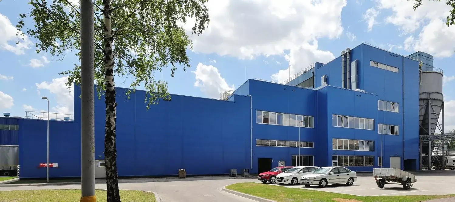 ARPANELi S MiWo sandwich-seinapaneelid värvitoonis RAL 5017 Poola suurima ja Euroopa ühe suurima konveierilintide tootja tootmistehase fassaadil. 🏭