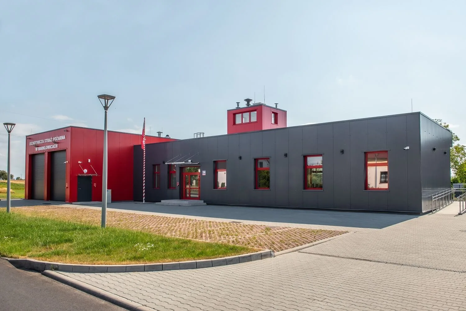 Marklowice vabatahtlike tuletõrjedepoo seinade katmiseks kasutati ARPANEL S MiWo sandwich-seinapaneele (RAL 3000) ja ARPANEL S PUR (RAL 7024)⛑🚒🏣🚨.